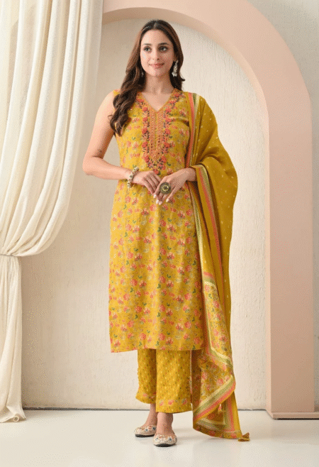 ₹2,899.00 – ₹2,999.00Price range: ₹2,899.00 through ₹2,999.00Mustard Blossom: Embrace bohemian grace with this stunning mustard yellow outfit, brought to life with vibrant multicolor floral embroidery. Perfect for adding a touch of whimsical charm to garden parties, summer festivals, and casual celebrations. Artfully crafted for the free-spirited and stylish.